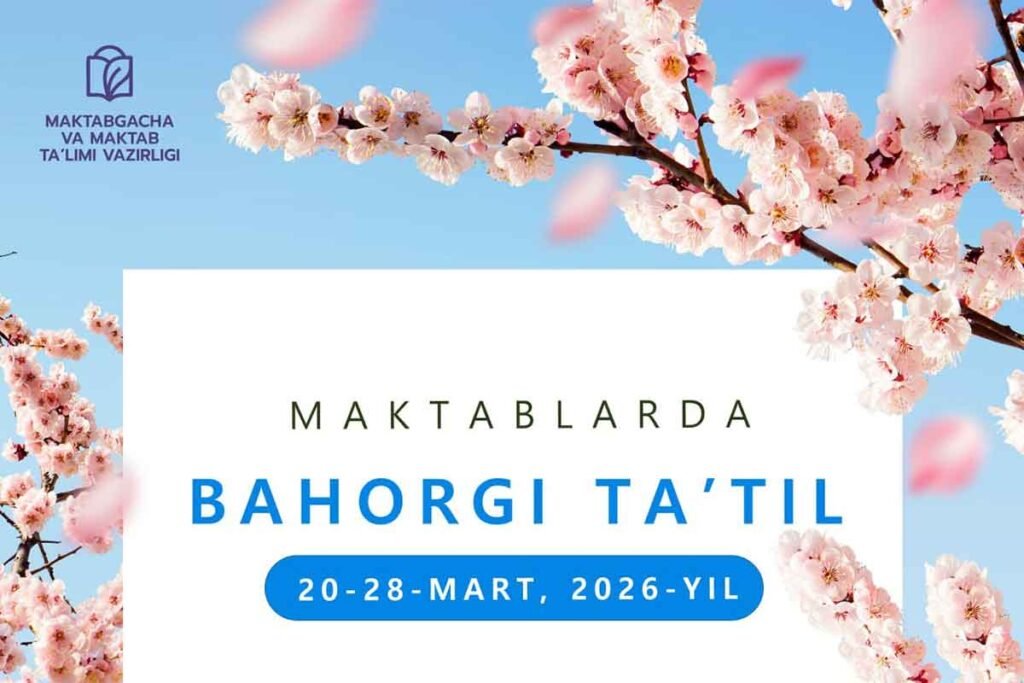 Ўзбекистон мактабларида баҳорги таътил кунлари ва Рамазон ҳайити муносабати билан белгиланган дам олиш вақти маълум қилинди. Рамазон ҳайитининг 20 март…
