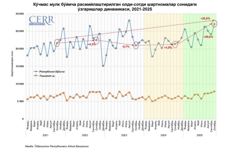 Ўзбекистонда октябрь ойида уй-жой бозорида фаоллик кескин ошди. Бу ҳақда Иқтисодий тадқиқотлар ва ислоҳотлар марказининг (ИТИМ) шарҳида айтилган. 2025 йил…