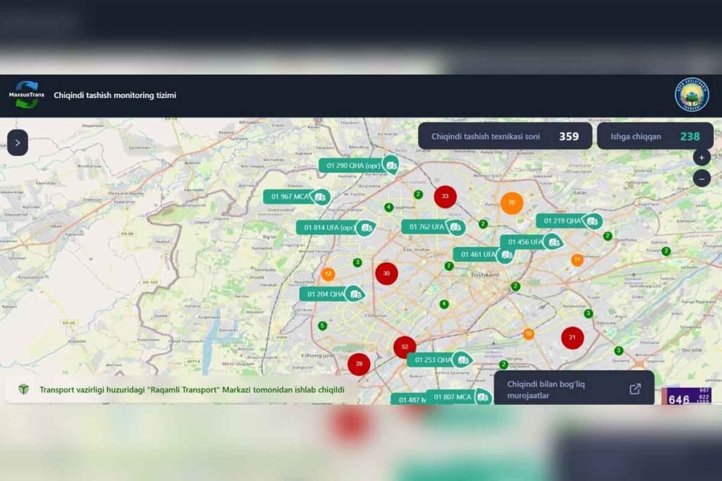 Тошкент ҳокимлиги Транспорт вазирлиги билан ҳамкорликда пойтахт аҳолисига чиқинди ташиш машиналарининг ҳаракатини GPS тизими орқали реал вақт режимида кузатиш имконини берувчи tozapoytaxt.uz («Тоза…