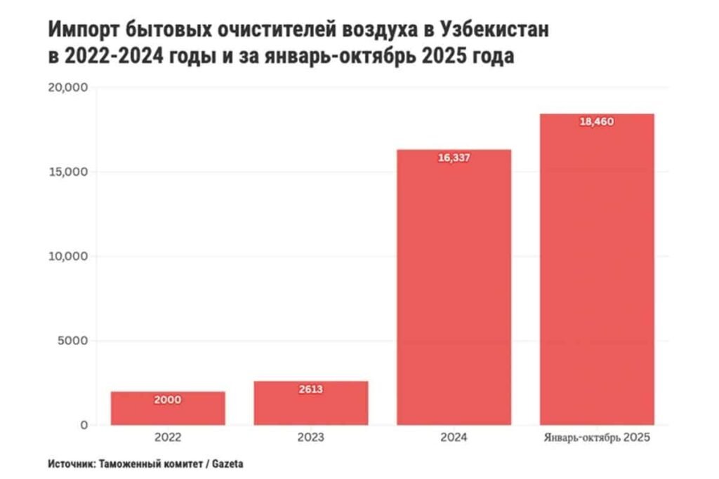 Сўнгги йилларда Ўзбекистонга маиший ҳаво тозалагичлар импорти жадал ўсишни намойиш этмоқда. Бу «Газета» томонидан ўрганилган Давлат божхона қўмитаси маълумотларидан келиб…