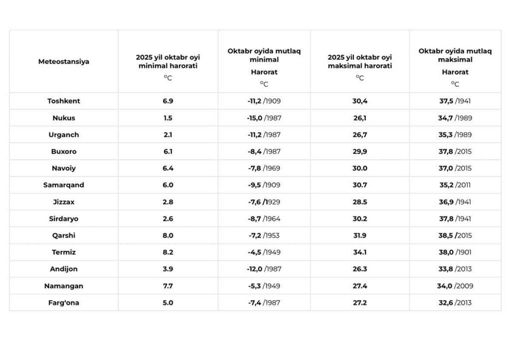 2025 йилнинг октябрь ойи Ўзбекистонда метеорологик кузатувлар олиб борилган барча йиллар ичидаги энг қуруқ ва иссиқ ойлардан бири бўлди. Бу…