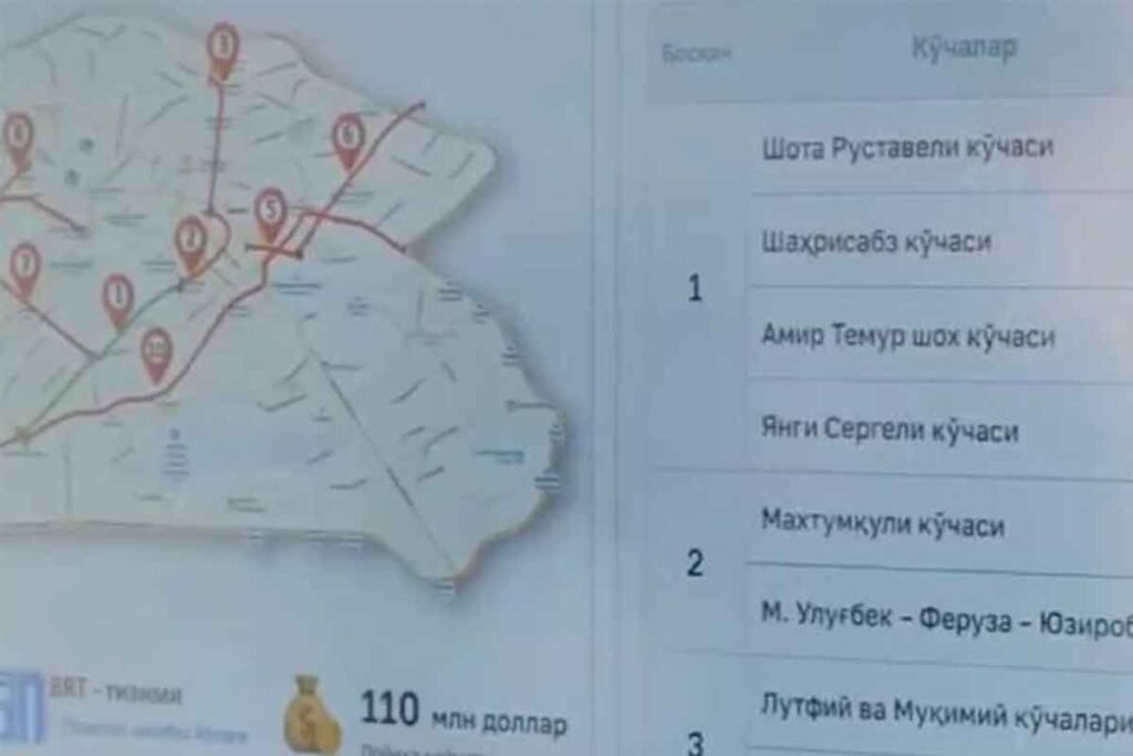 Тошкентда ажратилган автобус йўлаклари (BRT) тармоғи қайси кўчаларни қамраб олади? Рўйхат
