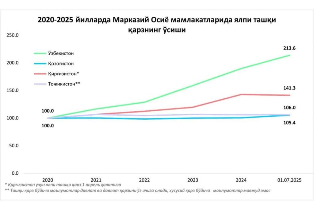 2025 йилнинг биринчи ярми якунларига кўра, Ўзбекистоннинг жами ташқи қарзи 72,2 млрд долларни ташкил этиб, олти ойда 8,1 млрд долларга…