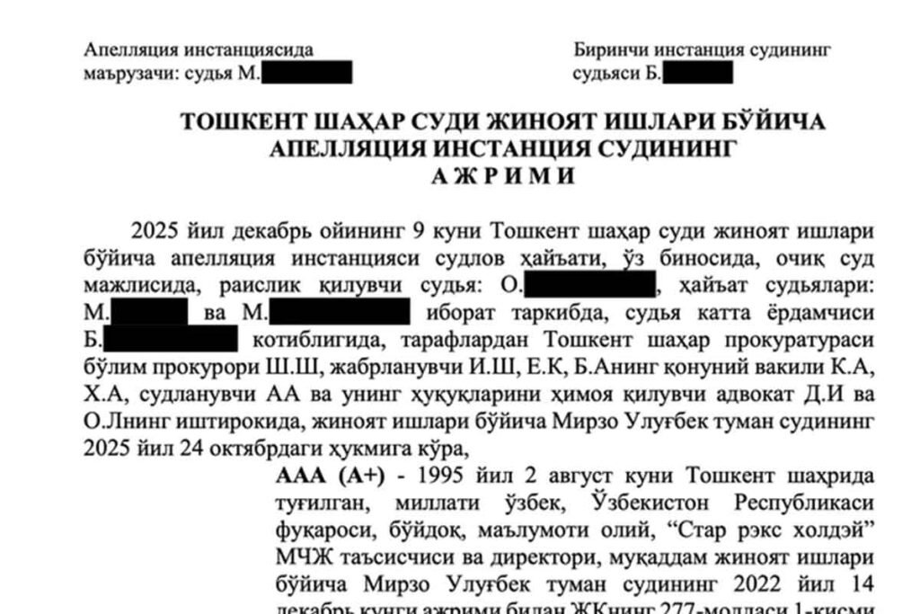 Ўзбекистон Судьялар олий кенгаши Тошкент шаҳар суди апелляция инстанциясида Акмал Шукуровга оид жиноят иши кўриб чиқилиши ҳолатлари юзасидан хизмат текшируви…