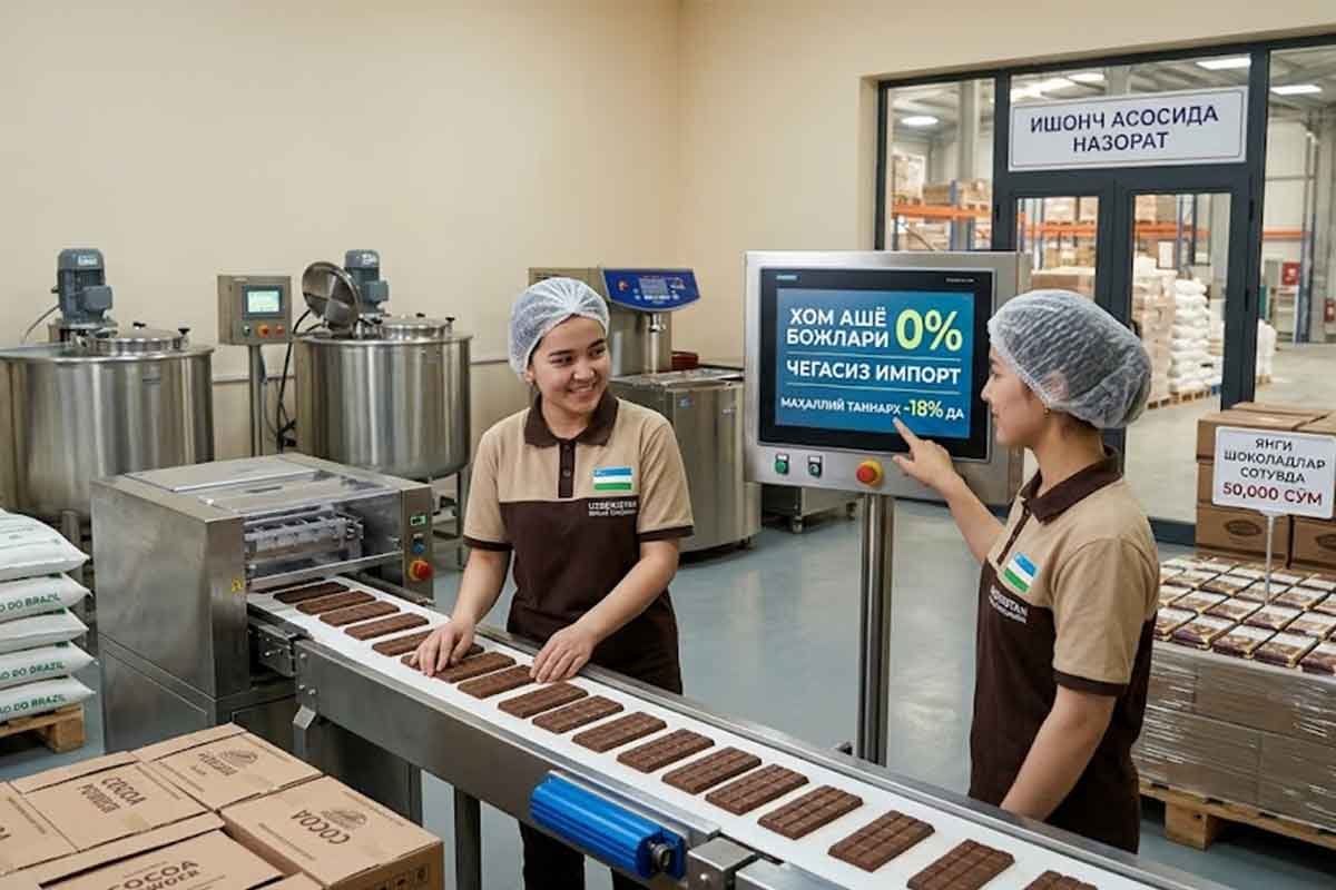 Ўзбекистонда ишлаб чиқариш учун импорт қилинадиган хом ашё божхона божлари ва ҚҚСдан озод этилиши, солиқлар эса фақат тайёр маҳсулот сотилганда тўланишини назарда тутувчи механизм жорий этилади. Ушбу ташаббус 2026 йил 28 март куни озиқ-овқат ва қандолатчилик соҳаси тадбиркорлари билан ўтказилган учрашувда эълон қилинди.