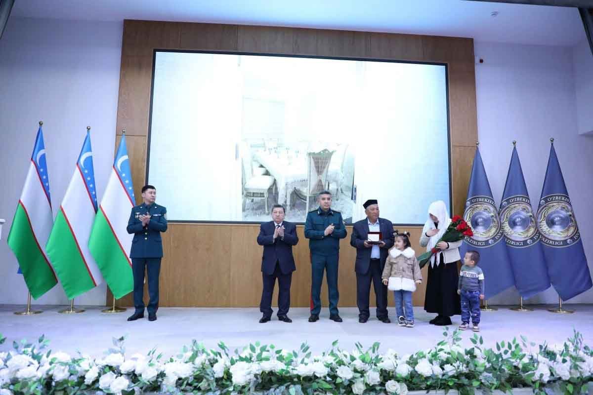 Тошкентда хизмат вазифасини бажариш чоғида ҳалок бўлган ЙПХ инспекторининг оиласига уч хонали уй калитлари топширилди (видео)