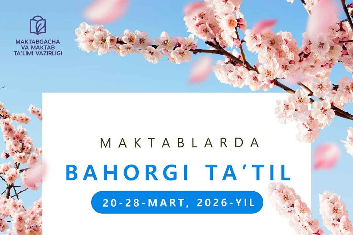 Таътил кунлари 20 мартдан бошланиб, 28 мартга қадар (шу куни ҳам) давом этади. Жорий ўқув йилининг тўртинчи чораги эса 30 март, душанба кунидан бошланиши белгиланган.