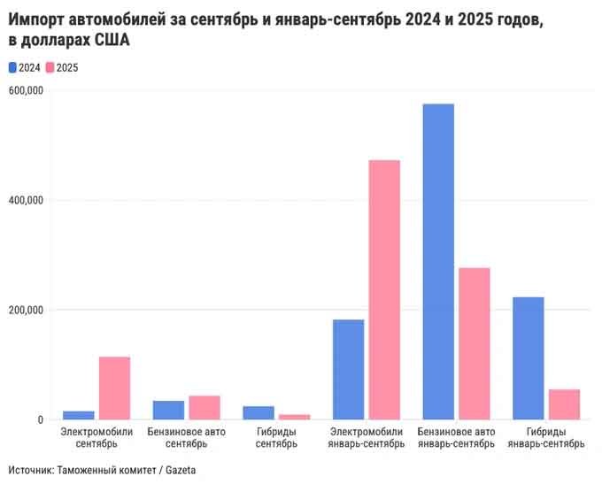 2025 йил 9 ой давомида электромобиллар импорти 473 млн долларни ташкил этди, бу 2024 йилнинг январь-сентябрь ойларидаги кўрсаткичдан ($182,1 млн) 2,6 баробар кўп.