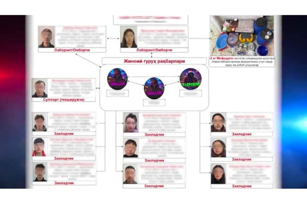 Маълум қилинишича, 22 ёшли талаба-кимёгар ва 18 ёшли қиз «кураторлар топшириғига асосан» Telegram’даги «наркодўкон» орқали прекурсорларни (наркотик воситалар, психотроп моддалар ва уларнинг аналогларини ишлаб чиқаришда фойдаланиладиган моддалар) қабул қилиб олиб, синтетик наркотиклар тайёрлашган. Хонадондан 1 кг мефедрон, шунингдек, гиёҳвандлик воситаларини ишлаб чиқаришда фойдаланиладиган асбоб-ускуналар ва анжомлар мусодара қилинган.