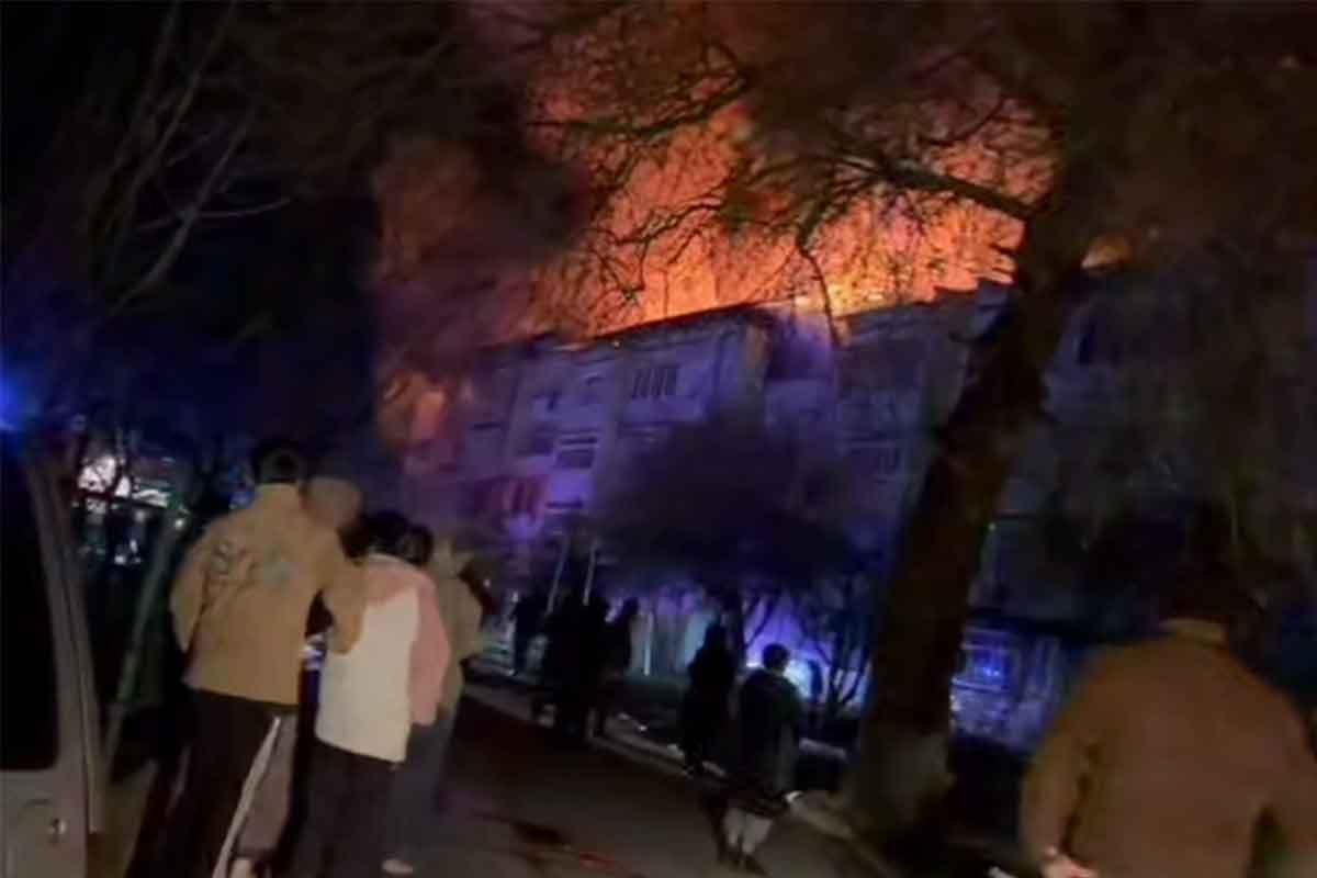 Ижтимоий тармоқлардаги видеоларда олов бинонинг томи бўйлаб тарқалганини кўриш мумкин. «Дарё» нашрининг ёзишича, бир киши жонлантириш бўлимида қолмоқда.